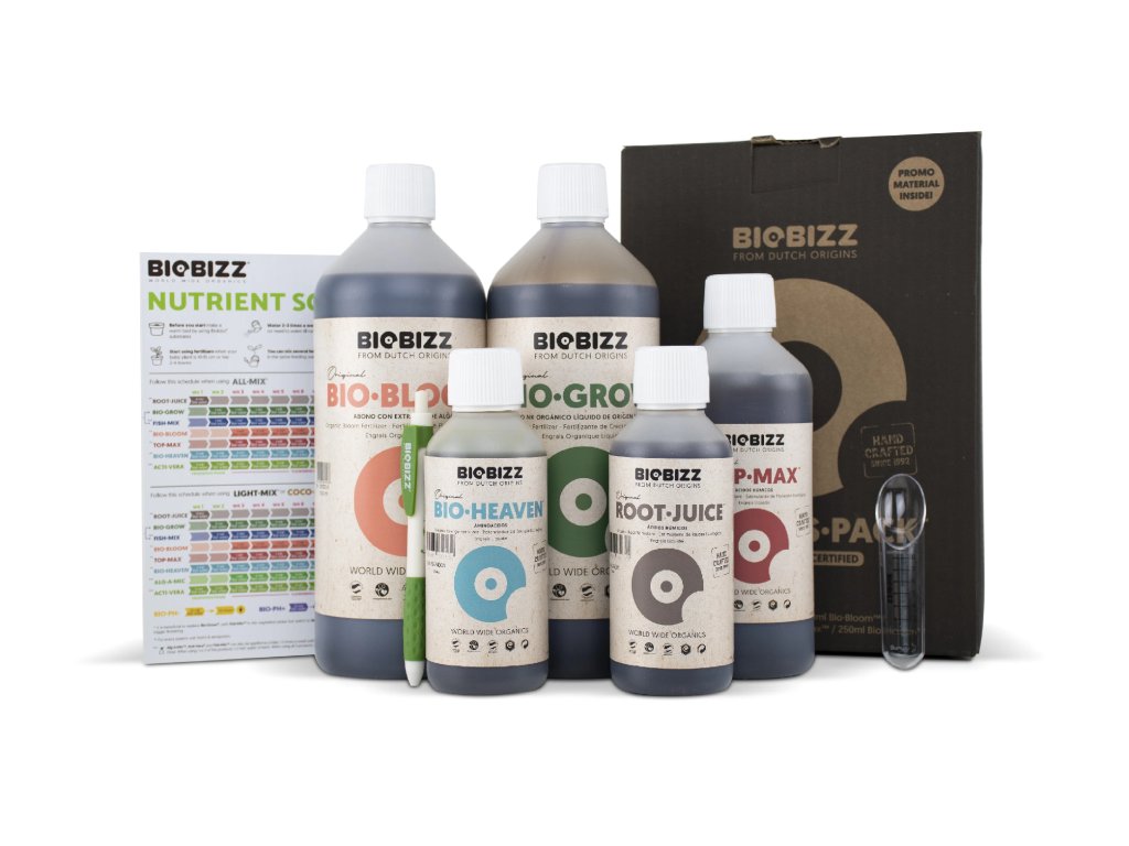 BioBizz Starters Pack obsahuje vše potřebné pro celý pěstební cyklus – od zakořenění přes růst až po fázi květu a sklizeň. Sada je vhodná pro začínající i pokročilé pěstitele.