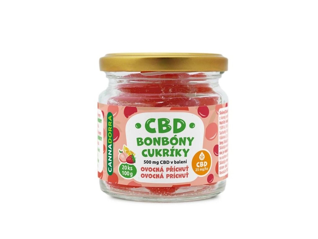 Balení obsahuje 20 kusů bonbónů a každý bonbón obsahuje 25 mg CBD.