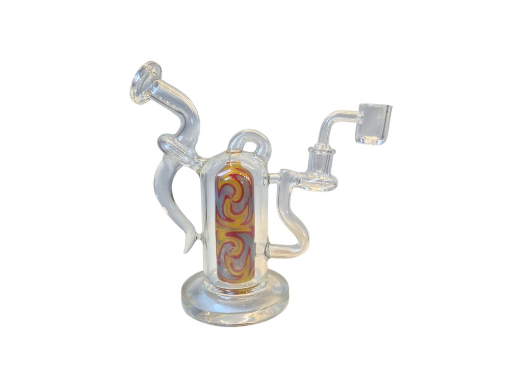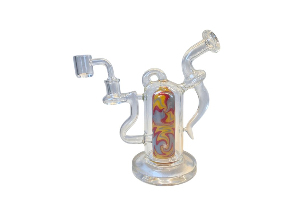 Tenhle rig je přesně ten typ kousku, který si zamiluješ hned po prvním potahu. Uvnitř má barevný swirl perk, který rozbíjí kouř do jemných bublin a krásně ho ochladí – výsledkem jsou hladké, čisté a plné daby bez škrábání v krku.